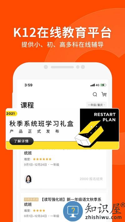 针对小学、初中、高中全科的在线辅导软件,这里的学习资源非常丰富,所有的知识点都立足课堂上所学习的,学生在线辅导的教育类产品,全国老师在家挑,网上辅导更平价。让你足不出户,在家就可以上课,这里的海量直播课程随你选择,相信你在这里可以得到极大的提升哦。