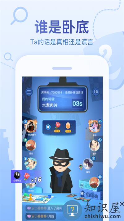 谁是卧底是湖南卫视、芒果tv《快乐大本营》快乐家族的的主持人和明星们一起玩的互动游戏.游戏简单有趣,非常适合朋友聚会玩.
