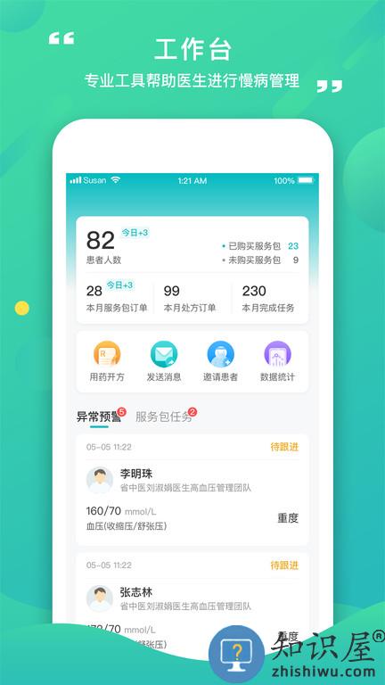 --在线问诊:医生可通过APP对患者提供在线问诊服务,对患者慢病管理的线上延伸;