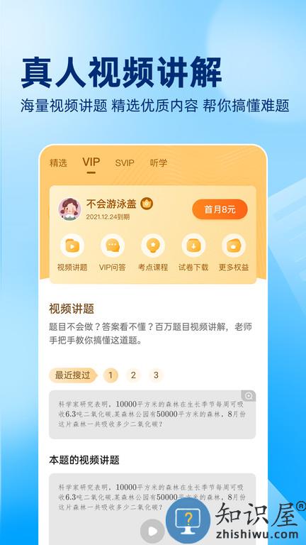 7.题库覆盖:数学、英语、语文、物理、化学、生物、历史、政治等,各科难题帮你解决~