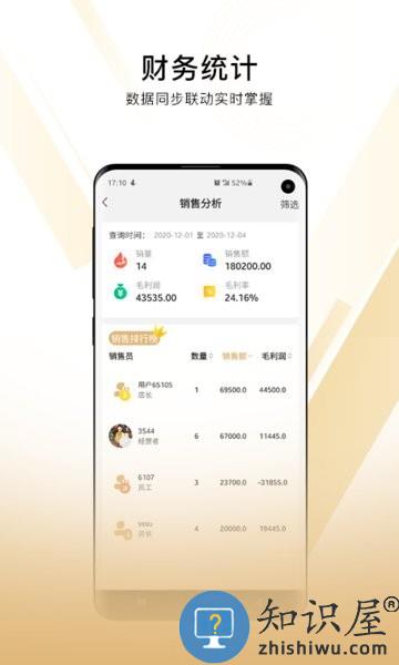 5、财务统计:库存成本、业绩报表、盈亏分析等数据同步联动实时掌握