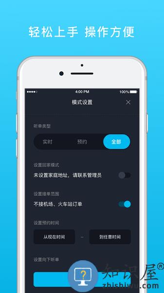 接单模式:可自定义切换接单模式,提供实时,预约等多种不同的接单状态。