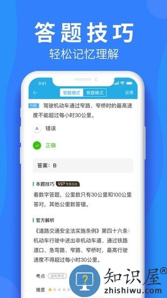 3、科一/科四专项练习:难题、易错题逐题解析知识点,巧妙记忆交通标志、交警手势,更有科目一、科目四考试技巧帮助记忆易错题。