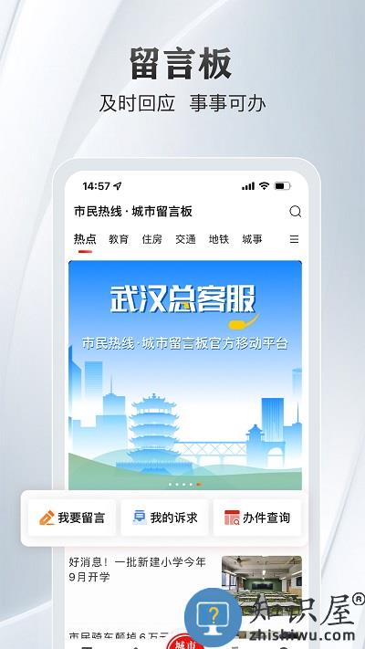 民有所呼,我有所应。武汉123家单位入驻,你的诉求能得到及时回复和处理,办理进度一目了然,还可以随时互动交流