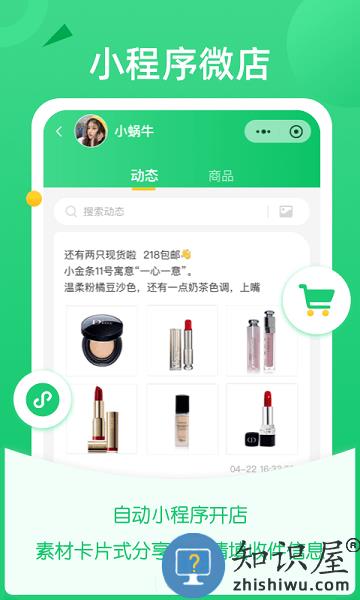 自动拥有自己的小程序微店,客户浏览后自动收藏你的微店;每条素材都能转发小程序卡片到好友或群,减少打扰又能吸引客户了解你的动态;