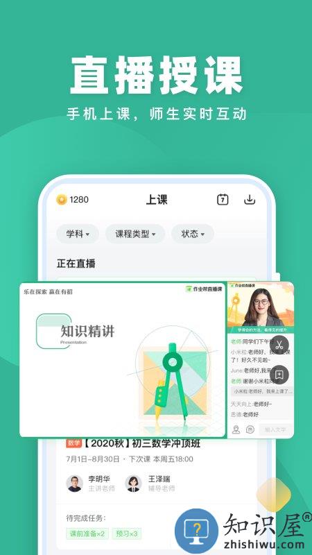 1、直播上课,互动教学,还可以课中答题赢学分。