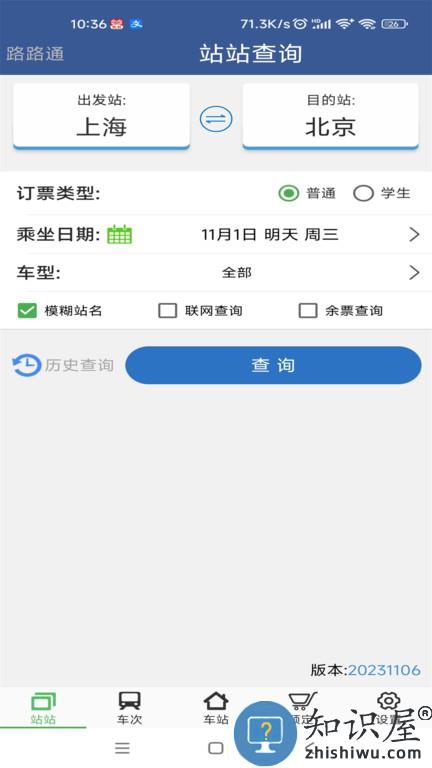 ·车次查询:通过“车次查询”, 可查询指定列车的信息