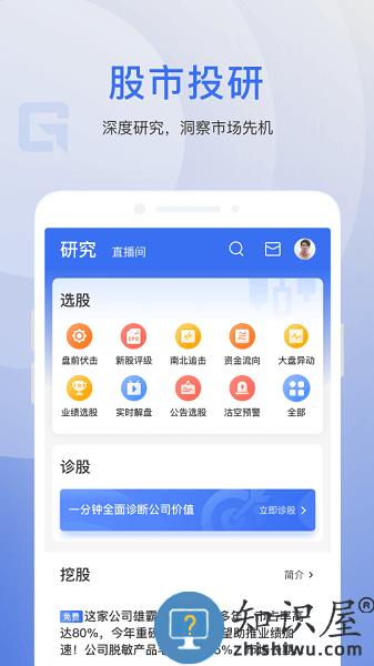 √「研究」包含研究和直播间,提供全面的选股诊股工具,以及专业的挖股文章,发掘有潜力的股票。也能进入直播间与股市大咖面对面交流,获取市场最新行情及投资建议。