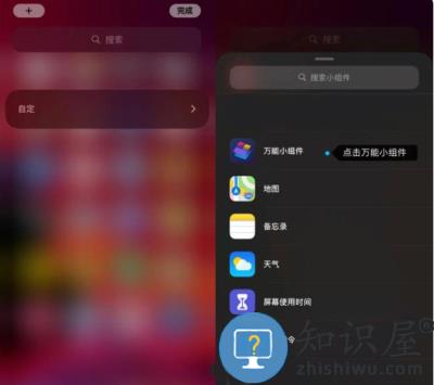 2、点击之后在左上角的“添加”按钮,找到万能小组件并点击。