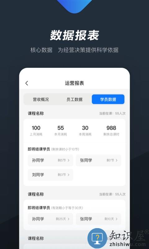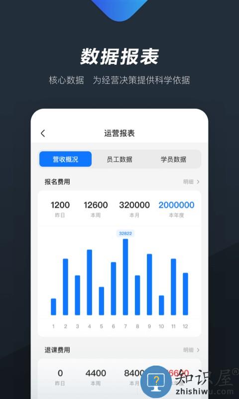 支持多种维度的运营报表,助你更快了解机构运营状况