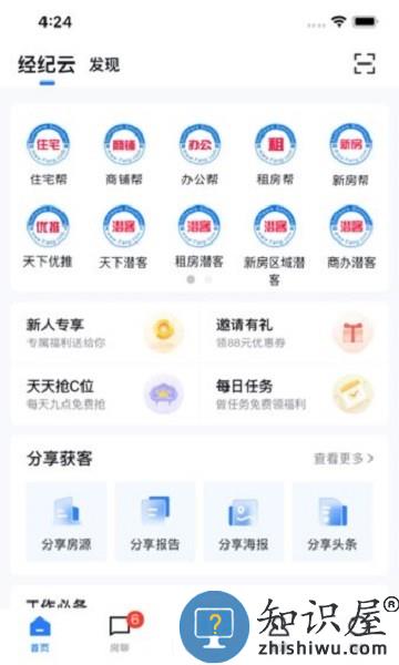 经纪云是一款为房地产行业经纪人提供的营销软件,房产经纪人可以在APP内发布房产信息,通过软件,快速获取客户资源,还能在线与客户进行沟通,提高工作效率。