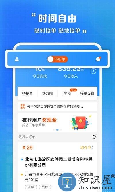 闪送是国内最快的同城快递速运递服务公司,为用户提供全天候1分钟响应、15分钟上门、60分钟送达全城的同城快递速运服务。工作的时间非常的自由,闪送员海量订单等你抢,欢迎下载体验。