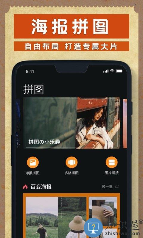 ·四宫格、九宫格、十六宫格切图,以把一张照片切割成4张、9张、16张,同时可以添加30种不同风格的切图背景。通过不规则的组合组成大图,分享到朋友圈、微博等地方