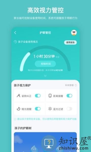 1、护眼提醒:在孩子电子产品上启用app,可开启姿势、距离、暗光和按时休息等提醒,引导孩子形成正确的用眼行为。