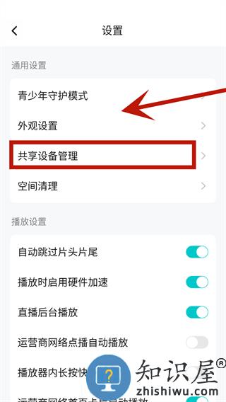 在新的页面中,找到并点击【共享设备管理】这个选项。4、开通会员