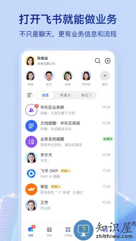 飞书app最新版本是一款为各行各业提供解决方案的一站式企业协作与管理工作平台。提供多种解决方案模板,让你轻松应对复杂的场景,可视化的进展呈现,一个流程就能管清所有的需求,全周期的服务,完整的解决方案,致力于让员工的工作流在整个业务周期高效流转,有需要的小伙伴们就快来下载使用吧!
