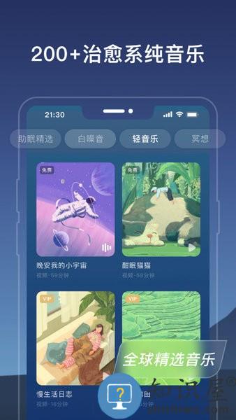 - 联合知名疗愈音乐制作人打造白噪音、轻音乐、脑波音乐等原创音乐,给您暖心的睡前陪伴。