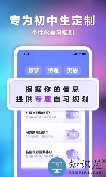 是创新的智能教辅工具,专属初中生,为其提供个性化自习规划和海量免费自习内容,帮助初中生高效课后自习。通过Al技术+互动动画的形式,点燃兴趣,深入知识本质,提升素养,致力提升初中生课后自习能力。