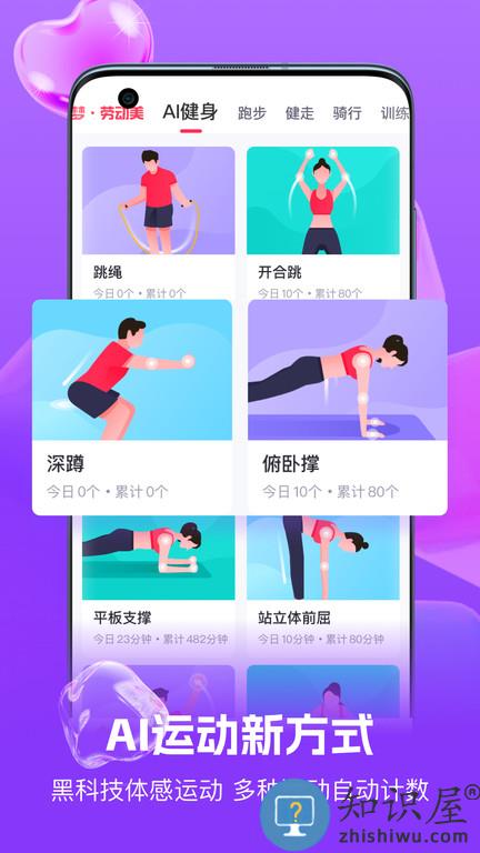 智能ai运动,0 使用门槛,操作简单,自动精准计数计时。提供跳绳、开合跳、仰卧起坐、深蹲等多种锻炼形式,实时捕捉用户关节运动,纠正运动姿势。