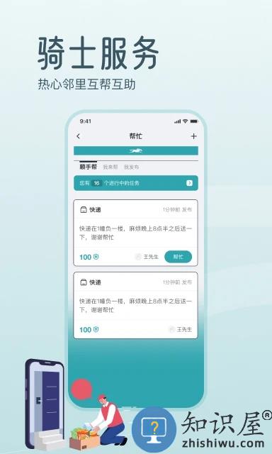 - 骑士帮忙:下班太晚来不及回家取快递,正在做饭发现酱油没有了......不要慌,发个求助任务请热心的骑士帮个忙!