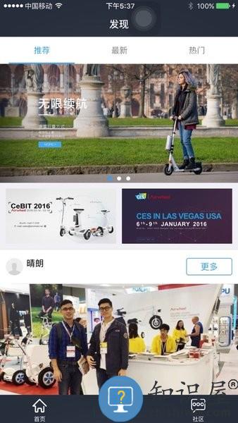 手机连接网络时,点击侧边栏的“骑行轨迹”可显示当前的地理位置及骑行的地图轨迹。点击探索,可看到来自不同国家地区的玩家发布的一些精美图片秀,及精彩视频。点击社区图标,可进入我们的官方社区,在这里可以进行技术交流、生活分享,让用户与我们一起创造完美的产品。