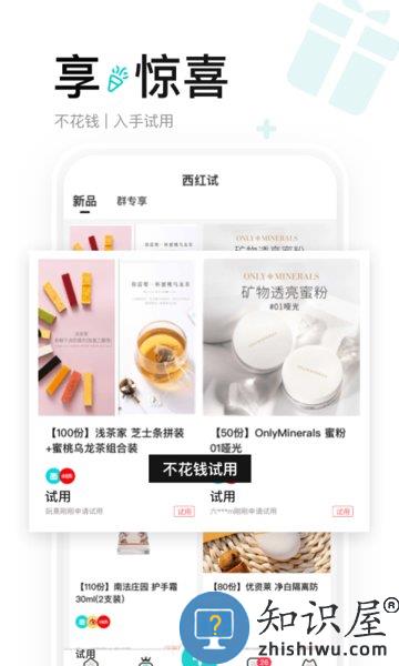 通过西五街app可免费获取高品质美妆、护肤、居家商品,分享自己的试用体验即可申请试用。