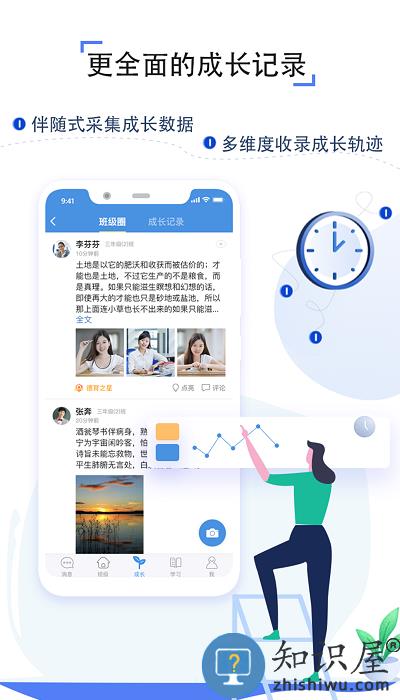4、多方沟通:教师、家长可快速创建备课组、育儿组等,围绕教学、教育实时交流;还可随时随地进行班级圈分享、互动,孩子在家与校穿梭时的学习和生活状况尽收眼底