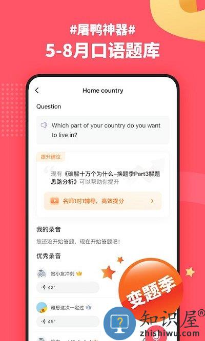 高命中率口语机经收录,精选雅思口语真题,定义考频,分类练习,定期更新,雅思口语一个APP搞定