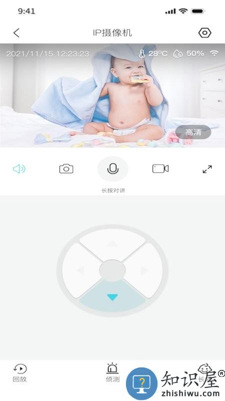 实时观看高清视频录像,为家人播放舒缓的音乐和睡前故事,时刻有你陪伴,双向语音功能,同家人零距离沟通,360°旋转角度。