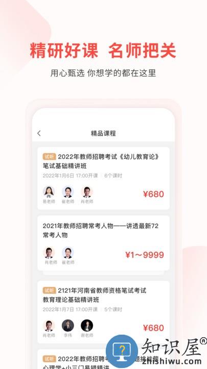 库课教师最新版是学习类的软件,专为教师资格证考试及教师招聘考试打造,给大家提供了海量的课程资源,你想学的都在这里,有什么疑问都可以在线提出,会有专业的老师为你解答,有需要的用户快来下载使用吧。