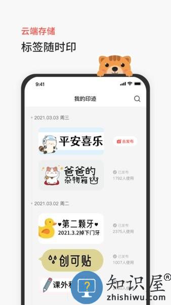 臣小印app是一款非常实用的办公软件,非常适合办公室使用,需要用户连接打印机进行使用,你可以直接把想要打印的内容通过手机连接打印机,直接实现无线打印,在这里就能够帮助用户随时随地打印不同的标签内容,app的操作方法简单,还可以在线上查看所有的历史印迹,让你清楚打印的全部信息;软件里面还汇集海量标签打印模板,支持用户一键印同款,通过软件能快速搜索素材,线上就能实现自由创作;软件智能便捷,真实分享,拥有海量免费标签,还拥有云存储功能,给你开他过许多帮助,需要的话即可来下载。