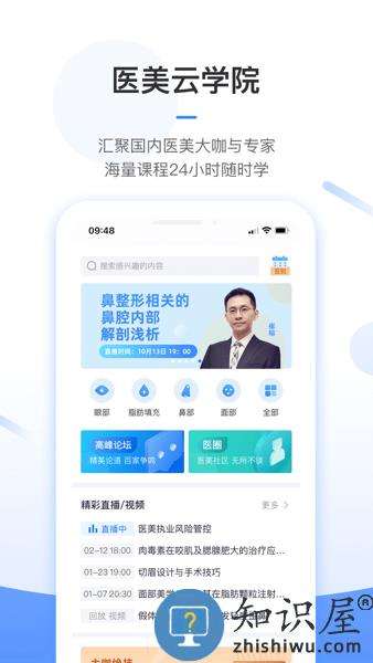 利用先进的3D模拟整形系统,为求美者提供图文、视频咨询指导等服务,让医生与求美者直接交流沟通。同时在云学院中,开展有手术视频、手术直播、医生讲座、行业会议、培训班等多种线上课程教学模式,为医生提供良好的学习和学术交流环境,全面提升医生的技术水平。