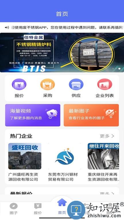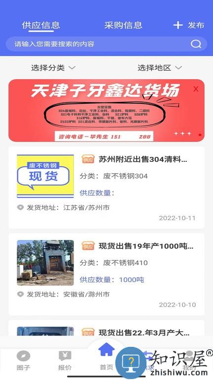【废不锈钢信息平台】是一款可线上对接生意 寻找货源信息 查看全国基地报价可直接联系基地采购部 每天及时更新货源和报价 还提供废不锈钢人员的交流圈子 同微信朋友圈一样 可发布个人以及公司需求 圈子供求信息上方 设有广告位 可推广个人及公司。