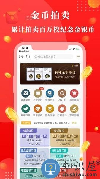 易金在线App是国内最大的贵金属投资领域纪念金银币二级市场社区电商拍卖交易平台,积聚8年的服务体系、以完善的技术创新和信任背书的发展势能。易金在线建立了在线竞拍、金币百科、易金大数据、认知传播、评级保养5大品牌方向。