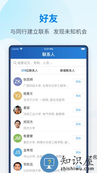 2.好友:与同行建立联系,发现未知的合作机会,促进学术交流与合作。