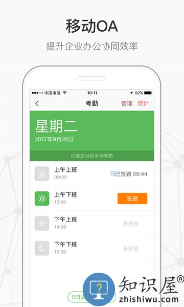 - 移动OA:手机考勤、流程审批、工作汇报、移动报销、任务管理、企业云盘、企业通讯录、在线聊天等丰富的功能