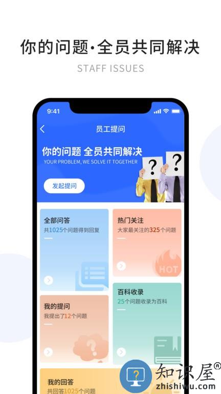 在员工提问中心点击发起提问,将问题进行编辑提交来获取问题解答回复。