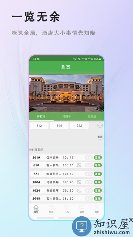客房特工酒店版软件是酒店客房综合管理app,能够查看待打扫打扫中以及已完成的房间数量和具体情况,支持按照楼层来查看房态,可以查看保洁人员的考勤信息,接收异常提醒并及时处理。