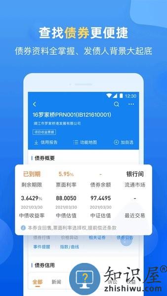 (6)债券深度资料:展示债券的详情信息,包括债券要素、债券发行、债券评级、债券估值、事件提醒、债券公告、相关证券、机构持仓等内容。