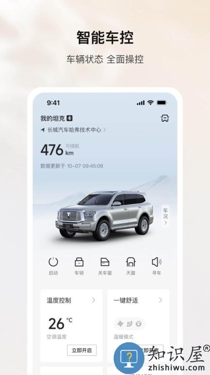 坦克车况全掌控,绑定爱车,随时关注车辆健康状况,体验互联服务或智能控车功能。