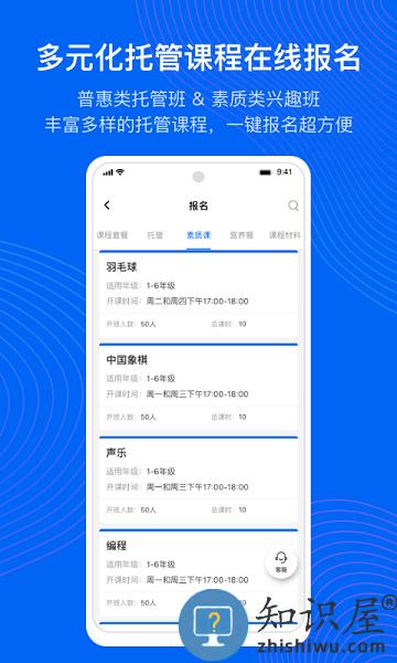 家长可以在线自由选择孩子的托管服务,包括托管时段(午托、晚托等)、选择相应的托管课程和餐食等。 轻松在线报名,在线支付。所有报名费由银保监会监管,保障家长资金安全。同时,将为每位校内托管的学生购买保险,让学生家长、学校都放心、安心。