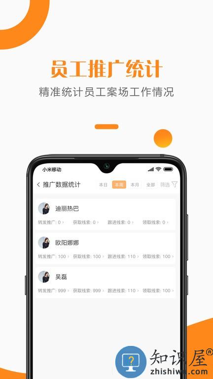 给居案场管理app可以便捷的在手机上查看客户的数据并进行管理,有详细的员工推广数据统计,可以便捷的获取线索,获取跟进领取线索数均可查看,还能查看转发推广的数据。
