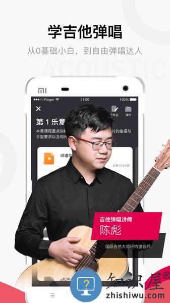 让你30天快速入门一种乐器,全新真人实时网络课程,完成进阶之路。Finger线上乐器教学的音乐教育软件。针对不同需求的用户免费提供多种乐器(民谣吉他、电吉他、尤克里里、架子鼓、声乐、钢琴、卡宏)的线上视频教学。同时,针对不同层次的用户提供难易程度不等的训练课程选择,并由用户自由选择时间进行训练。每完成一次课程学习,用户即可在训练记录里查看训练进度。