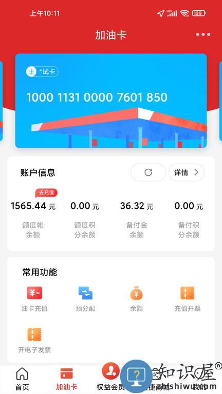 1、下载安装之后,进入首页,点击下面的加油卡。