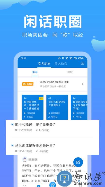 10、新增职圈频道:讨论职场话题,解答职场疑惑,对话业内大咖,建立职场人脉;