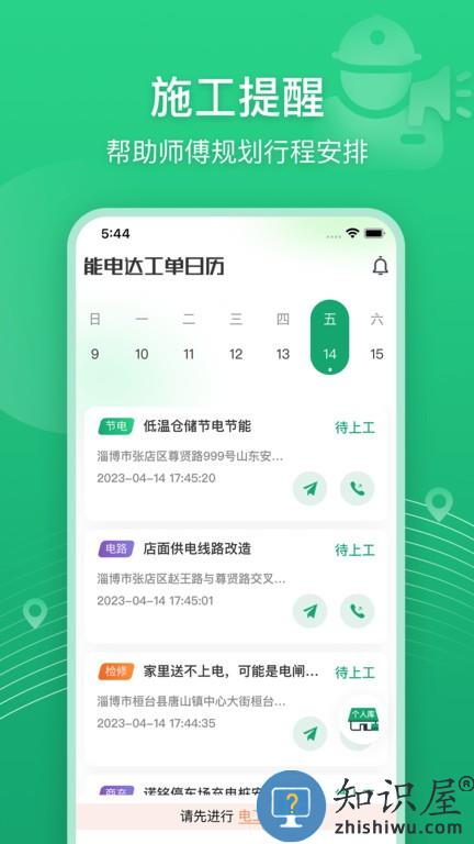 能电达软件是专为电工师傅打造的电力接单app,海量订单精准推送,支持在手机上查看最新的任务安排,支持根据区域以及工种类型来筛选适合的订单,有非常贴心的施工日历,会提醒待办的事项。