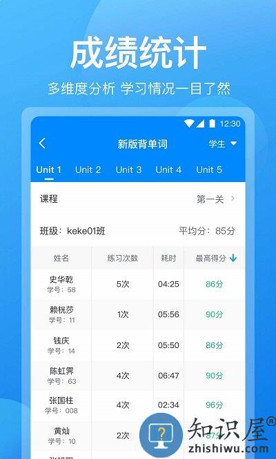 2.成绩统计:支持背单词、备考训练、绘本、口语等成绩统计.