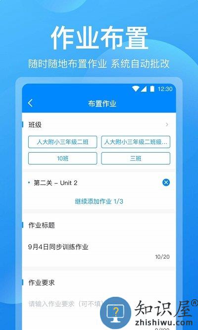 1.作业布置:支持背单词、同步测试、口语训练、听说等布置.