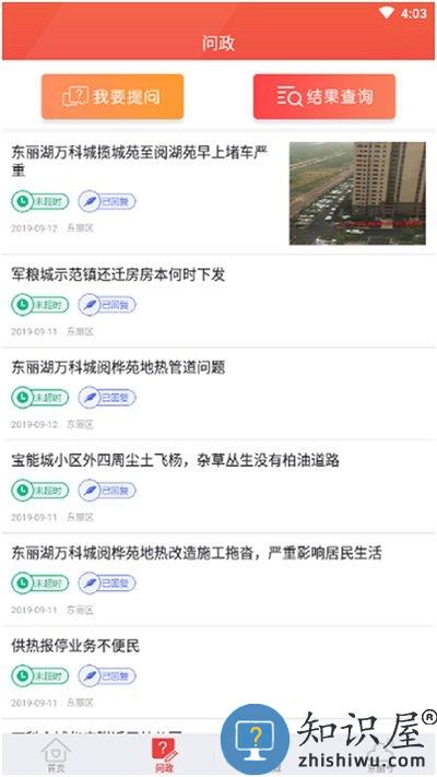“问政”为群众反映问题的政务服务功能,网民可以将遇到的问题反映至区长或区委书记,并通过查询码对问题进行结果查询