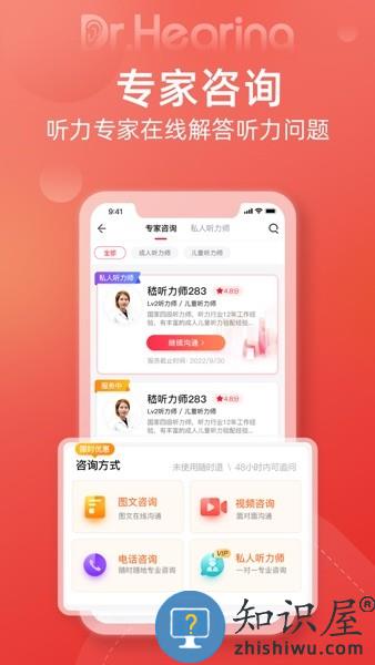 专家咨询:用户选择听力师经进行图文\电话\视频进行咨询,也可购买私人听力师服务;